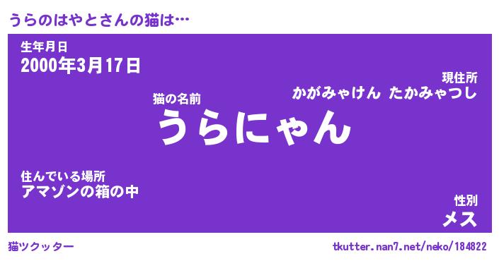 | 生年月日? …「くろねこ」 | 8月01日 10:16 |