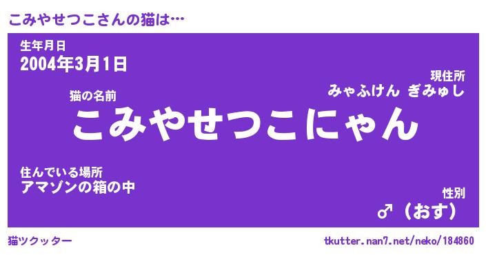 | 男性向けラノベタイトル風あだ名 | 『こみやせつこの憂鬱』 |