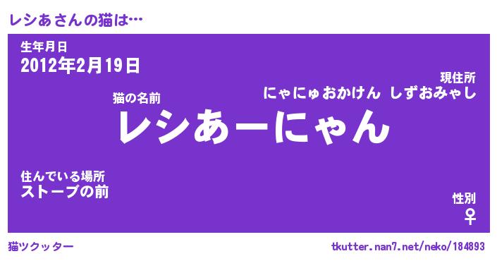 | ポケモン風あだ名 | 『レシチュウ』『レシアダネ』 |