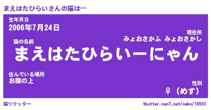 | 生年月日? …「くろねこ」 | 8月01日 10:16 |