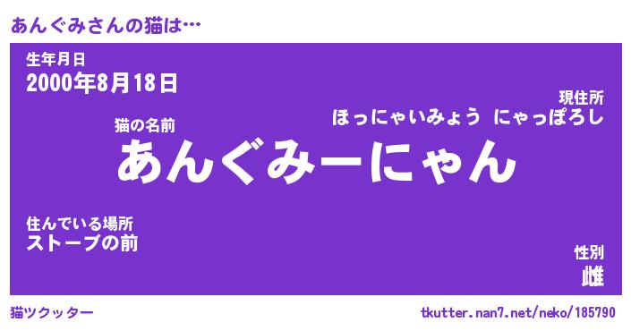 | 意味不明あだ名 | 『ペロリンあんぐみ』『永久保存あんぐみ』 |