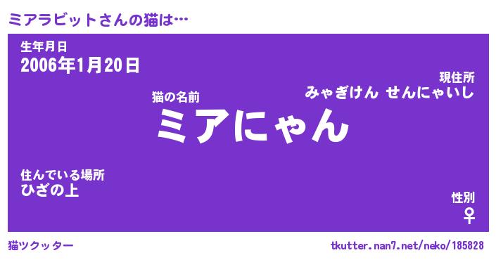| ポケモン風あだ名 | 『ミアチュウ』『ミアラダネ』 |