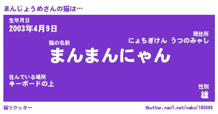 | ポケモン風あだ名 | 『マンチュウ』『マンジダネ』 |