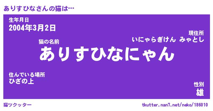 | ヘコむあだ名 | 『ありにー』『牛乳』『ありぷりん』 |