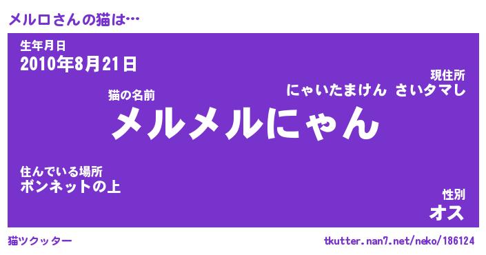 | 恥ずかしいあだ名 | 『プリティーメルロ』『メルっちょ』 |