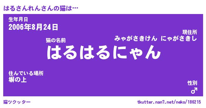 | 2回繰り返すあだ名 | 『はるはる』『ははるる』『ねばねば』 |