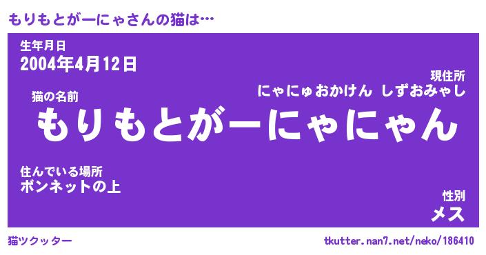 | 肩書あだ名 | 『もりもとがーにゃ御曹司』 |