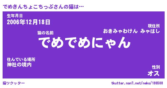 | ポケモン風あだ名 | 『デメチュウ』『デメキダネ』 |