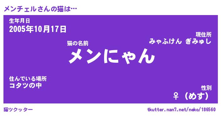 | ポケモン風あだ名 | 『メンチュウ』『メンチダネ』 |