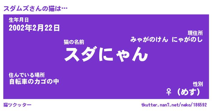 | 意味不明あだ名 | 『ペロリンスダムズ』『永久保存スダムズ』 |