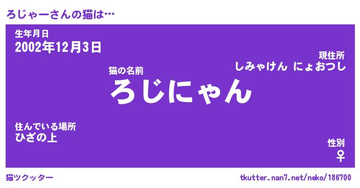 | 意味不明あだ名 | 『ペロリンろじゃー』『永久保存ろじゃー』 |