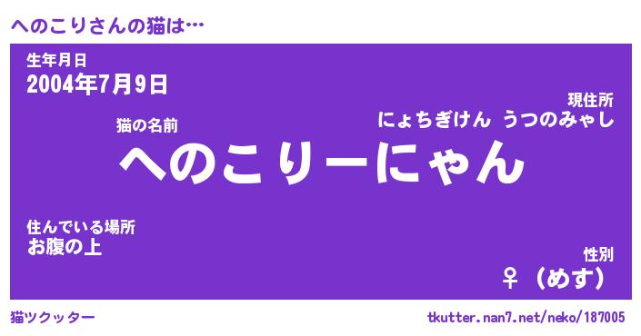 | 生年月日? …「くろねこ」 | 8月01日 10:16 |