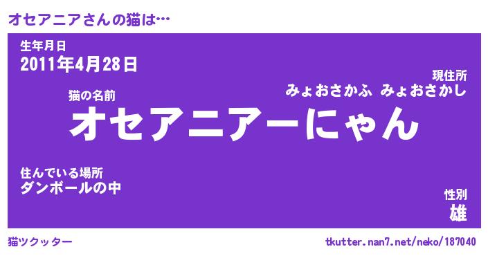 | 生年月日? …「くろねこ」 | 8月01日 10:16 |