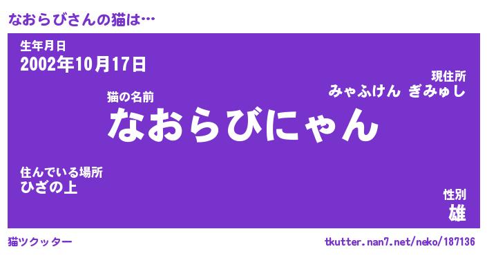 | 生年月日? …「くろねこ」 | 8月01日 10:16 |