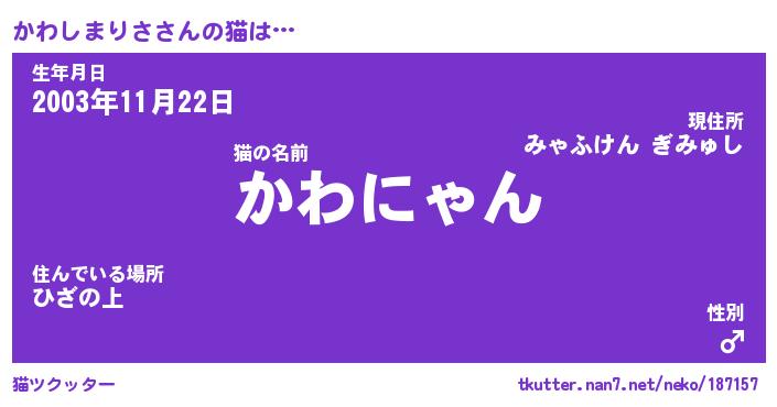 | ポケモン風あだ名 | 『カワチュウ』『カワシダネ』 |
