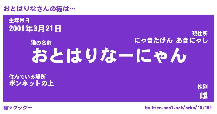 | 生年月日? …「くろねこ」 | 8月01日 10:16 |