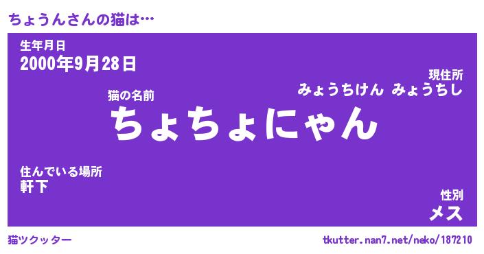| 意味不明あだ名 | 『ペロリンちょうん』『永久保存ちょうん』 |