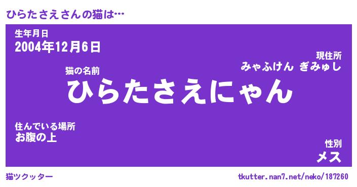 | 生年月日? …「くろねこ」 | 8月01日 10:16 |
