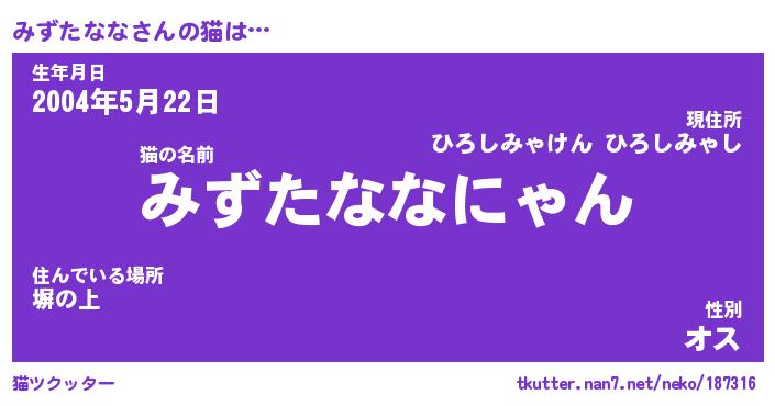 | 生年月日? …「くろねこ」 | 8月01日 10:16 |