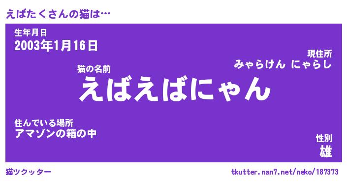 | 意味不明あだ名 | 『ペロリンえばたく』『永久保存えばたく』 |