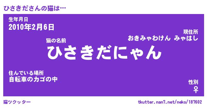 | 生年月日? …「くろねこ」 | 8月01日 10:16 |