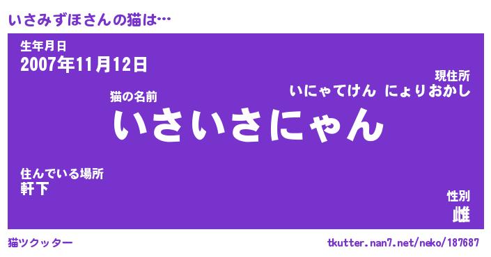 | ツイッター | いさみずほさんのツイッターID『dendenmushi_nyan』 |