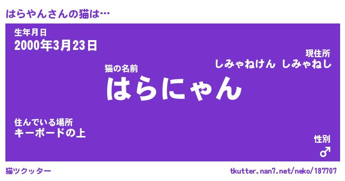 | 生年月日? …「くろねこ」 | 8月01日 10:16 |