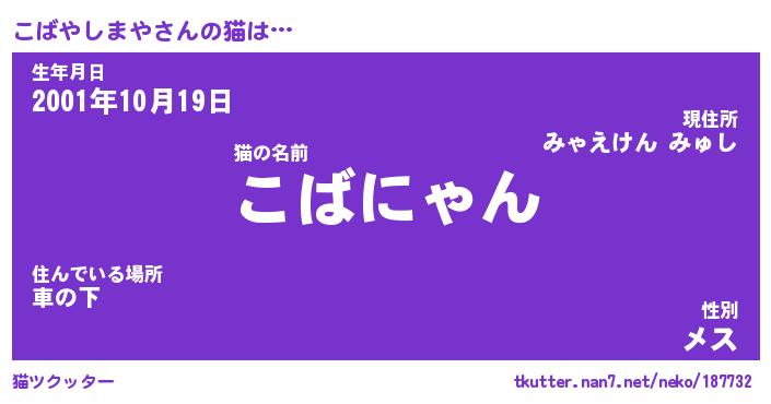 | 2回繰り返すあだ名 | 『こばこば』『ここばば』『ぬめぬめ』 |