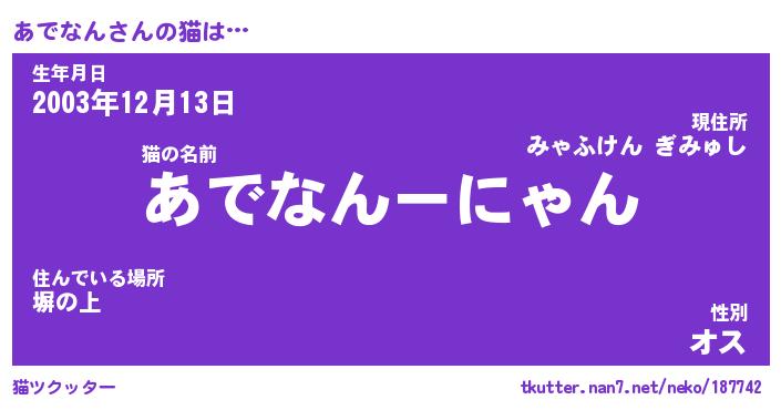| 生年月日? …「くろねこ」 | 8月01日 10:16 |