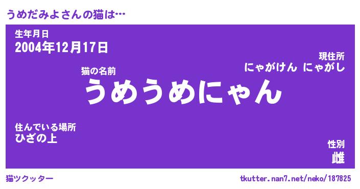 | ポケモン風あだ名 | 『ウメチュウ』『ウメダダネ』 |