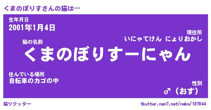 | 生年月日? …「くろねこ」 | 8月01日 10:16 |