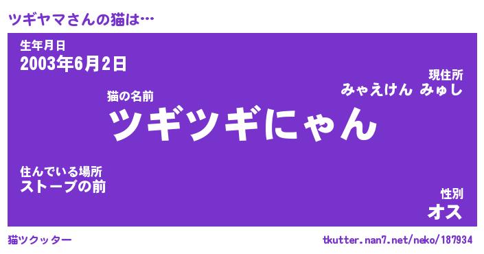 | ヘコむあだ名 | 『ツギにゅー』『つくし』『ツギっ子』 |