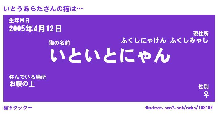 | 生年月日? …「くろねこ」 | 8月01日 10:16 |