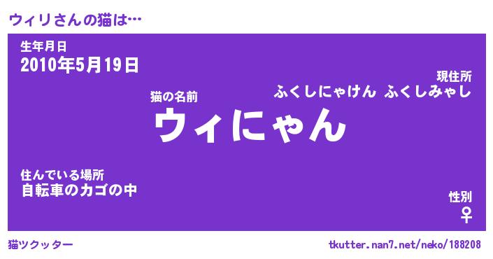 | ポケモン風あだ名 | 『ウィチュウ』『ウィリダネ』 |