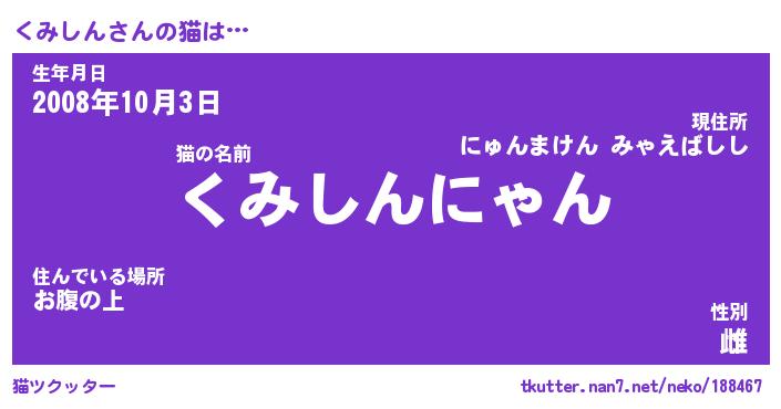 | 意味不明あだ名 | 『ペロリンくみしん』『永久保存くみしん』 |