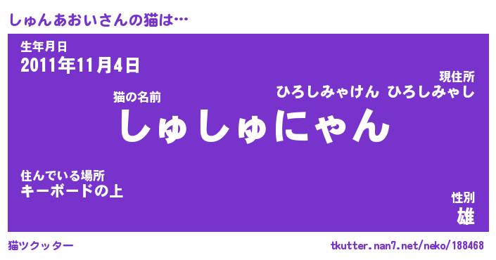 | 2回繰り返すあだ名 | 『しゅしゅ』『ししゅゅ』『ぬらぬら』 |