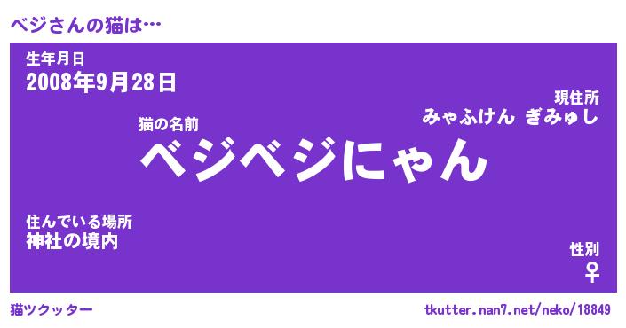 | ポケモン風あだ名 | 『ベジチュウ』『ベジダネ』『ヒベジ』 |