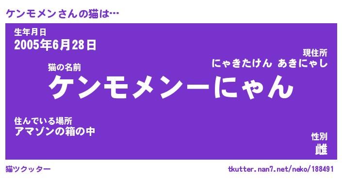 | ファンタジー風あだ名 | 『ケンフェル』『エターナルケンモメンー』 |