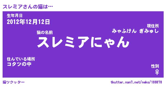 | ヒーロー風カッコイイあだ名 | 『スーパースレミア』『魔戒騎士スレ』 |