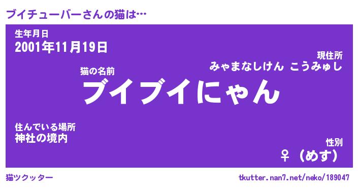 | ポケモン風あだ名 | 『ブイチュウ』『ブイチダネ』 |
