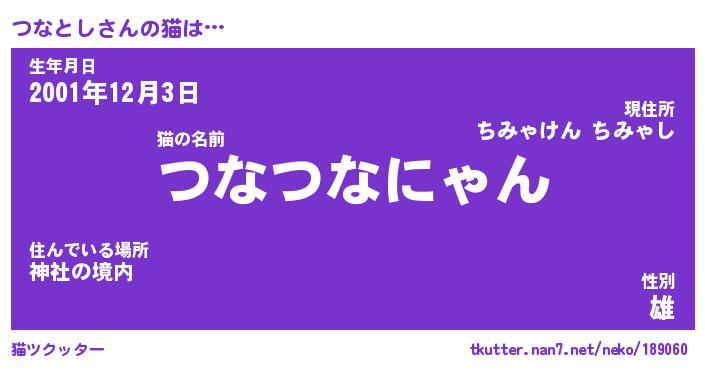 | ポケモン風あだ名 | 『ツナチュウ』『ツナトダネ』 |