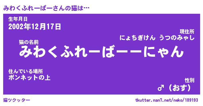 | 生年月日? …「くろねこ」 | 8月01日 10:16 |