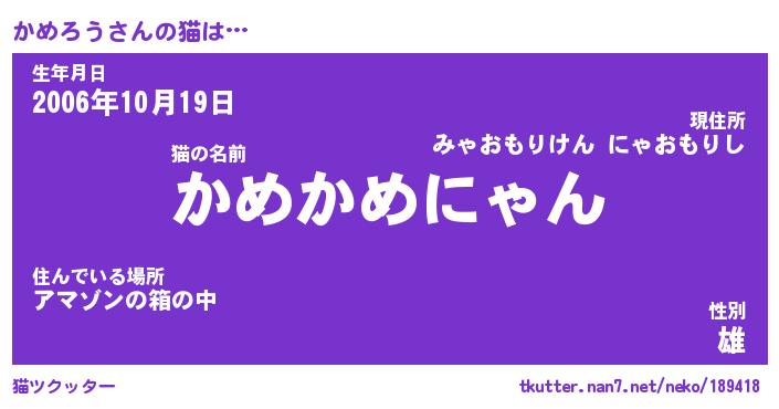 | 2回繰り返すあだ名 | 『かめかめ』『かかめめ』『ぬれぬれ』 |
