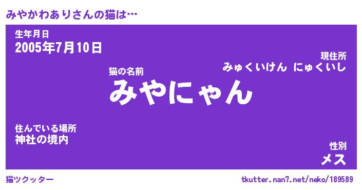 | ヘコむあだ名 | 『みやにゅー』『豆乳』『みやを』 |