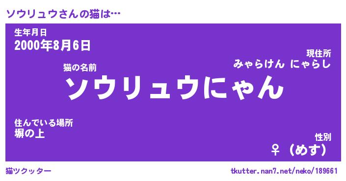 | 生年月日? …「くろねこ」 | 8月01日 10:16 |
