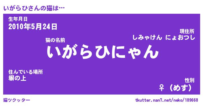 | 意味不明あだ名 | 『ペロリンいがらひ』『永久保存いがらひ』 |