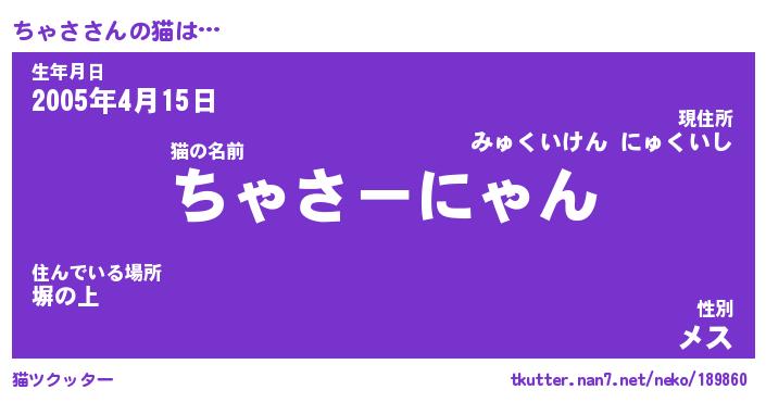 | ポケモン風あだ名 | 『チャチュウ』『チャサダネ』 |
