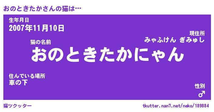 | ツイッター | おのときたかさんのツイッターID『konnyaku_nyan』 |