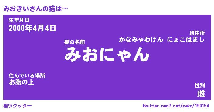 | ファンタジー風あだ名 | 『ミオフェル』『エターナルミオキイー』 |
