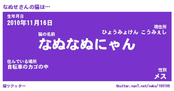 | ポケモン風あだ名 | 『ナヌチュウ』『ナヌセダネ』 |